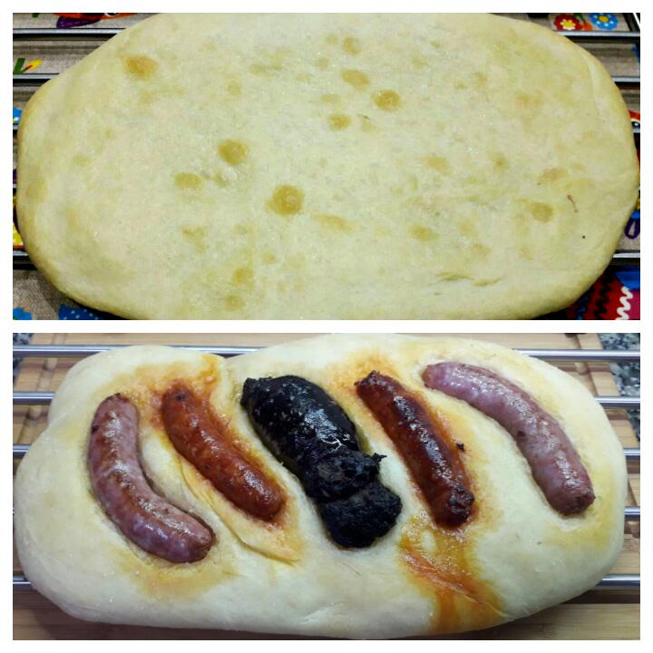 En cuanto al embutido le podéis poner lo que más os guste, incluso panceta. Se puede poner en crudo o darle unas vueltas en la sartén antes de ponerlo en la coca y en el horno ya se termina de hacer.
