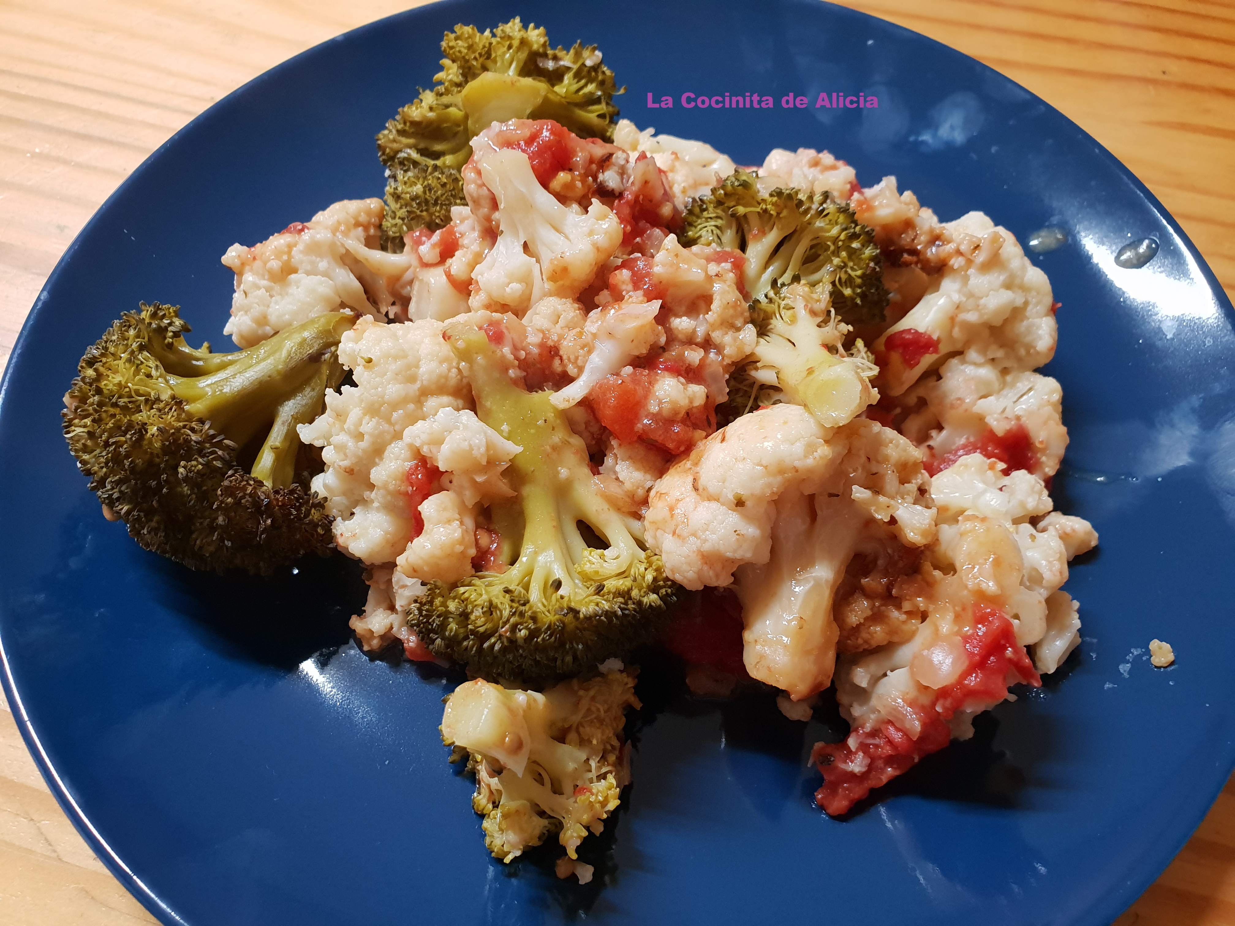 - Agregamos la mezcla de tomate por encima de la coliflor y el brócoli.