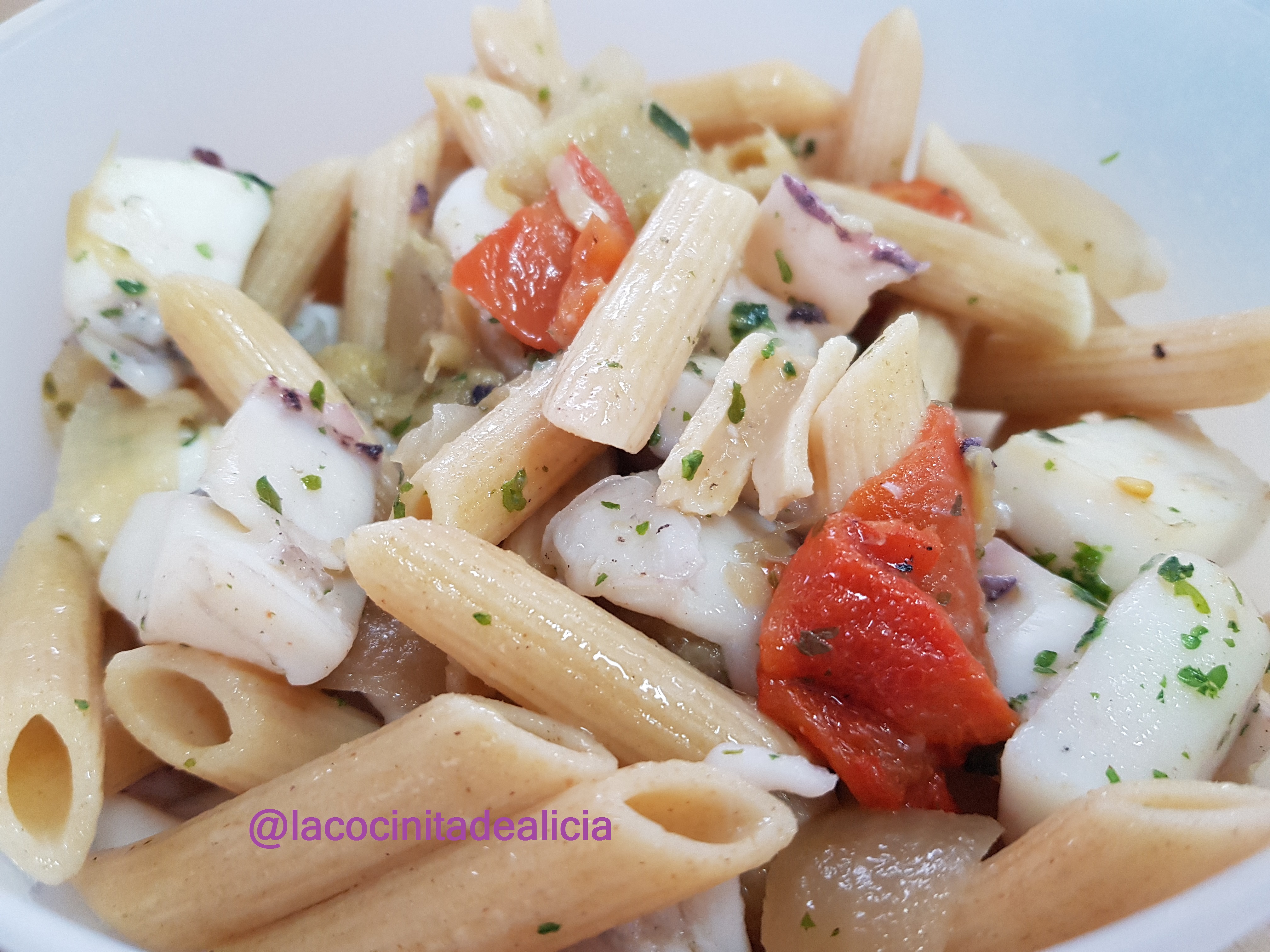 - Mezclamos la sepia, con la verdura de la escalivada y los macarrones y servimos.