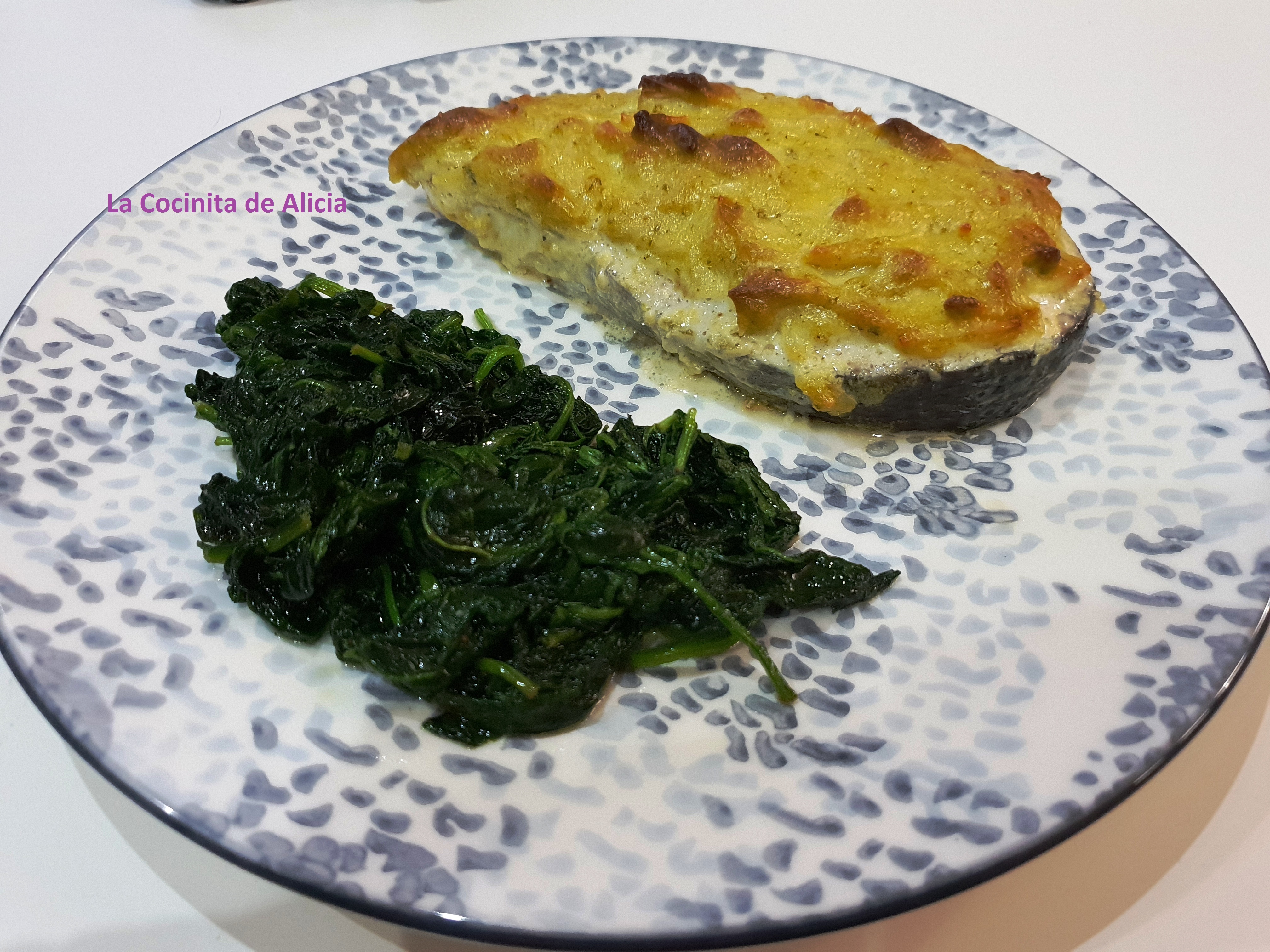 Como guarnición le hemos puesto espinacas, pero le podéis poner la verdura que más os guste.