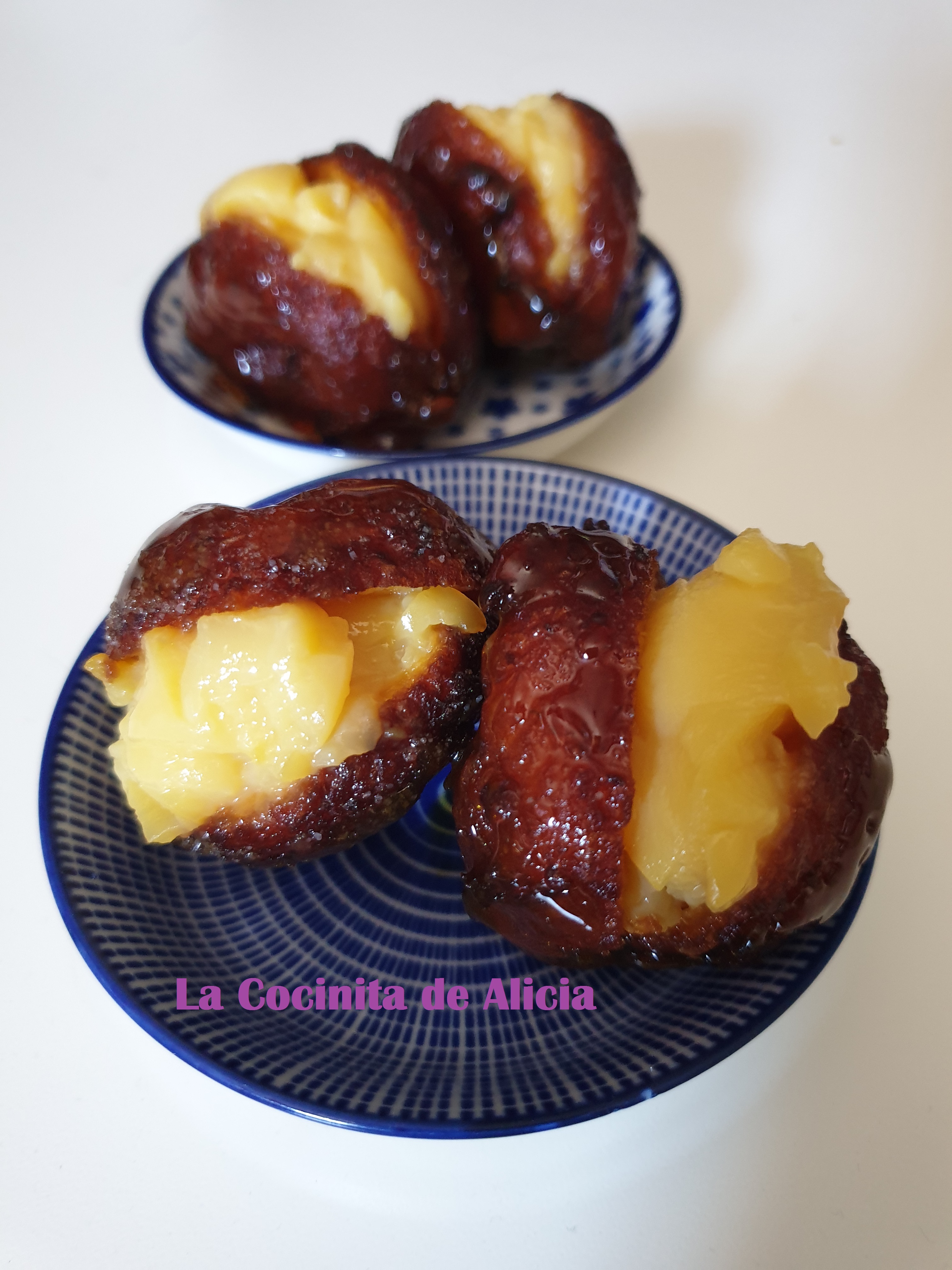 Un consejo…lo mejor es preparar los buñuelos que nos vayamos a comer, si nos salen de más es mejor congelarlos una vez los tenemos fritos y en el momento que queramos se descongelan y se pueden pasar por caramelo y rellenar. Más que nada porque el caramelo está crujiente y bueno cuando está recién hecho, pero al día siguiente o más allá el caramelo se va haciendo líquido y se pierde, aunque la verdad es que siguen están buenísimos 😀